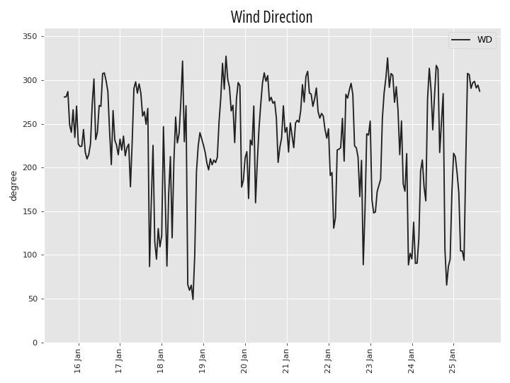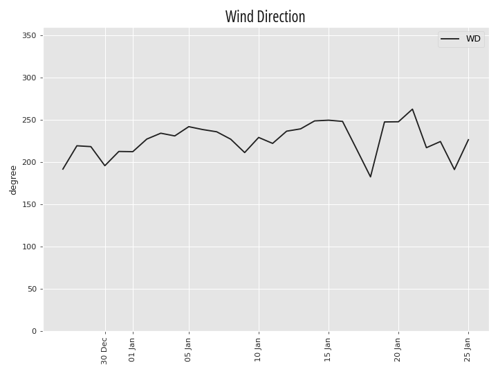 | Temperature | Humidity | Precipitation | Wind Speed | Wind Direction |