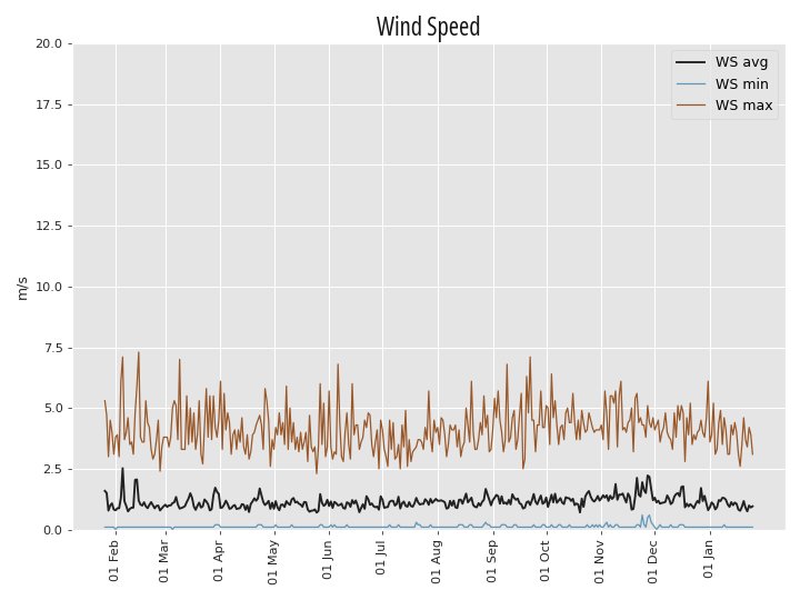 Ten days historical data is plotted in 3-hour data. Thirty days and 1 year historical data are plotted in daily average.